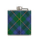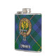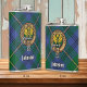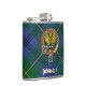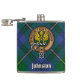Clan Johnston Wappen Abzeichen umgeben von einem Gurt und Schnallen über Tartan Hintergrund. Eigener Text.
