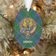 Clan Johnston Wappen Abzeichen umgeben von einem Gurt und Schnallen über Tartan Hintergrund. Benutzerdefinierter Text auf beiden Seiten.