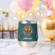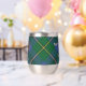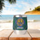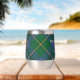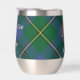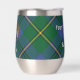 Clan Johnston Wappen Abzeichen umgeben von einem Gurt und Schnallen über Tartan Hintergrund. Benutzerdefinierter Text auf beiden Seiten.
