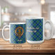 Clan Keith Wappen Abzeichen umgeben von einem Gurt und Schnalle über dem Hintergrund tartan. Benutzerdefinierter Text auf beiden Seiten.