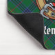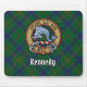 Clan Kennedy Wappen Abzeichen umgeben von einem Gurt und Schnalle über Tartan Hintergrund. Eigener Text.
