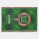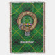Clan MacArthur-Wappenabzeichen umgeben von einem Riemen und einer Schnalle über einem Tartan-Hintergrund. Benutzerdefinierter Text.