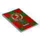 Clan MacAulay Wappen Abzeichen umgeben von einem Gurt und Schnalle über Tartan Hintergrund. Eigener Text.