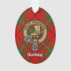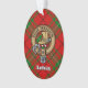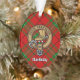 Clan MacAulay Wappen Abzeichen umgeben von einem Gurt und Schnalle über Tartan Hintergrund. Benutzerdefinierter Text auf beiden Seiten.