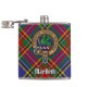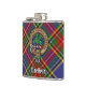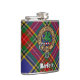 Clan MacBeth Wappen Abzeichen umgeben von einem Gurt und Schnalle über Tartan Hintergrund. Eigener Text.