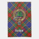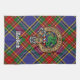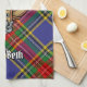 Clan MacBeth Wappen Abzeichen umgeben von einem Gurt und Schnalle über Tartan Hintergrund. Eigener Text.