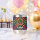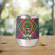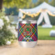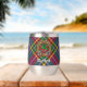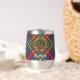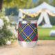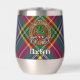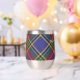 Clan MacBeth Wappen Abzeichen umgeben von einem Gurt und Schnalle über Tartan Hintergrund. Benutzerdefinierter Text auf beiden Seiten.