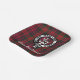 Paper Party liefert mit dem schottischen Clan MacDonald Wappen Abzeichen auf rotem, modernem Clan Tartan Hintergrund.