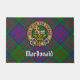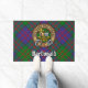 Clan MacDonald Wappen Abzeichen umgeben von einem Gurt und Schnalle über Tartan Hintergrund. Eigener Text.
