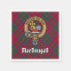 Clan MacDougall Wappen Abzeichen umgeben von einem Gurt und Schnalle über tartan Hintergrund. Eigener Text.