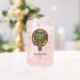 Clan MacDowall Wappen Abzeichen umgeben von einem Gurt und Schnalle über Tartan Hintergrund. Benutzerdefinierter Text auf beiden Seiten.