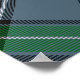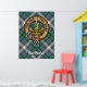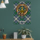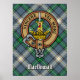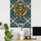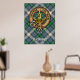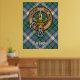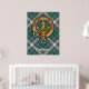 Clan MacDowall Wappen Abzeichen umgeben von einem Gurt und Schnalle über Tartan Hintergrund. Eigener Text.