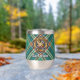 Clan MacFarlane Wappen Abzeichen umgeben von einem Gurt und Schnalle über urrbart alten Jagdhintergrund. Benutzerdefinierter Text auf beiden Seiten.