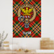 Clan MacGill Wappen Abzeichen umgeben von einem Gurt und Schnalle über Tartan Hintergrund. Eigener Text.