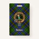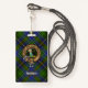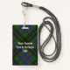 Clan MacInnes Wappen Abzeichen umgeben von einem Gurt und Schnallen über dem Hintergrund des Tartanes. Eigener Text.