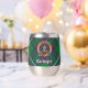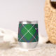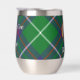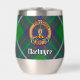 Clan MacIntyre Wappen Abzeichen umgeben von einem Gurt und Schnalle über Tartan Hintergrund. Benutzerdefinierter Text auf beiden Seiten.