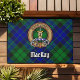 Clan MacKay Wappen Abzeichen umgeben von einem Gurt und Schnalle über Tartan Hintergrund. Eigener Text.