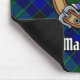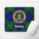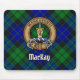 Clan MacKay Wappen Abzeichen umgeben von einem Gurt und Schnalle über Tartan Hintergrund. Eigener Text.