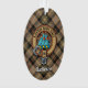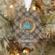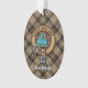 Clan MacKenzie Wappen Abzeichen umgeben von einem Gurt und Schnalle über braunen Jagd Tartan Hintergrund. Benutzerdefinierter Text auf beiden Seiten.