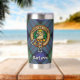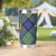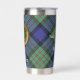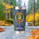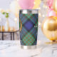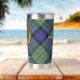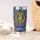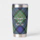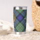 Clan MacLaren Wappen Abzeichen umgeben von einem Gurt und Schnalle über Tartan Hintergrund. Benutzerdefinierter Text auf beiden Seiten.