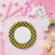 Papier Teller mit einer Grenze des Tartan für Clan MacLeod und seine Teile, einschließlich Beaton und MacCasgill. Hellgelb, schwarz und rot - schottisches kariertes Muster. Erhältlich in zwei Größen.