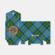 Clan MacLeod Wappen Abzeichen umgeben von einem Gurt und Schnalle über grünem Jagdtartan. Benutzerdefinierter Text und Monogramm.