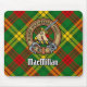 Clan MacMillan Wappen Abzeichen umgeben von einem Gurt und Schnalle über Tartan Hintergrund. Eigener Text.