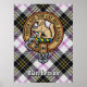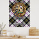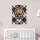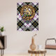 Clan MacPherson Wappen Abzeichen umgeben von einem Gurt und Schnallen über Kleid Tartan Hintergrund. Eigener Text.