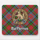 Clan MacPherson Wappen Abzeichen umgeben von einem Gurt und Schnalle über Tartan Hintergrund. Eigener Text.