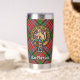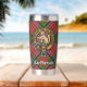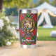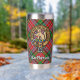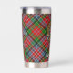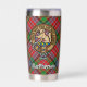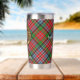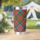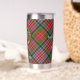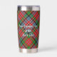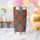 Clan MacPherson Wappen Abzeichen umgeben von einem Gurt und Schnalle über Tartan Hintergrund. Benutzerdefinierter Text auf beiden Seiten.