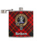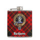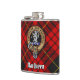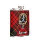Clan MacQueen Crest über Tartan Flachmann