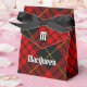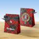 Clan MacQueen Wappen Abzeichen umgeben von einem Gurt und Schnalle über Tartan. Benutzerdefiniertes Monogramm. Eigener Text.