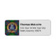 Clan Malcolm or MacCallum crest badge surrounded by a strap and buckle over tartan background. Custom text fields for name and address.