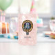 Clan Malcolm or MacCallum crest badge surrounded by a strap and buckle over tartan background. Custom text on both sides.