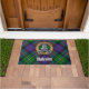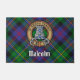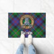 Clan Malcolm or MacCallum crest badge surrounded by a strap and buckle over tartan background. Custom text.