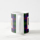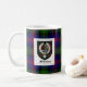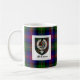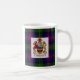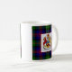 Diese klassische weiße Tasse kennzeichnet die alten Arme des Clans McLennan gelegt auf dem Clan Tartan auf einer Seite und einer anderen Version des Clan-Wappen-Abzeichens auf der anderen Seite.