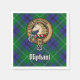 Clan Oliphant Wappen Abzeichen umgeben von einem Gurt und Schnallen über Tartan Hintergrund. Eigener Text.