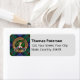 Clan Paterson Wappen Abzeichen umgeben von einem Gurt und Schnalle über Tartan Hintergrund. Benutzerdefinierte Textfelder für Name und Adresse.