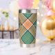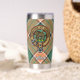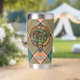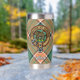 Clan Pollock Wappen Abzeichen umgeben von einem Gurt und Schnallen über dem Hintergrund des Tartanes. Benutzerdefinierter Text auf beiden Seiten.