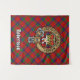 Clan Robertson Wappen Abzeichen umgeben von einem Gurt und Schnalle über Tartan Hintergrund. Eigener Text.
