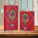 Clan Rose Wappen Abzeichen umgeben von einem Gurt und Schnallen über Tartan. Eigener Text.
