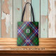 traditionelles Clan Russell-Tartan mit modernen Farben. Nahtloses Muster. Benutzerdefinierter Text und Monogramm auf beiden Seiten.
