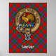 Clan Sinclair Wappen Abzeichen umgeben von einem Gurt und Schnalle über Tartan Hintergrund. Eigener Text.