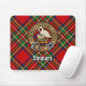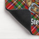Clan Stewart Wappen Abzeichen umgeben von einem Gurt und Schnalle über Tartan Hintergrund. Eigener Text.