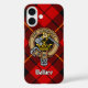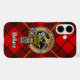 Clan Wallace Wappen Abzeichen umgeben von einem Gurt und Schnalle über Tartan Hintergrund. Eigener Text.