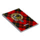 Clan Wallace Wappen Abzeichen umgeben von einem Gurt und Schnalle über Tartan Hintergrund. Eigener Text.