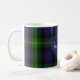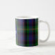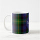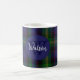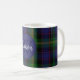 Mit Monogramm Kaffee-Tasse in einem traditionellen und farbenfrohen schottischen Clan Watson tartan karierten Muster gemacht. Ein blauer Kreis hat ein Monogramm und einen Familiennamen. Personalisieren Sie das Monogramm und den Namen, um Ihre Bedürfnisse Anzug.