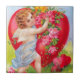 Eine schöne Vintage Fliese, die einen schönen Engel mit Rosen vor einem brennenden Herzen, gemalt vom amerikanischen Illustrator/vom kommerziellen Künstler Ellen Hattie Clapsaddle kennzeichnet.