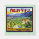 Vintages Fruchtkäfiglabel aus Claremont, Los Angeles, Kalifornien. Atemberaubend schneebedeckte Berge, Orange- und Zitronenhaine, Tal und Wasser in der Ferne und ein schönes spanisches Haus. Valley View ist farbenfroh, lebendig und einzigartig.