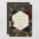 This design captures the dramatic elegance of a Dutch Master's still-life painting. Lush, painterly blossoms in deep claret and rich indigo emerge from a dark, moody background. Touches of ivory and muted foliage create a sophisticated chiaroscuro effect, perfect for an opulent and romantic union.